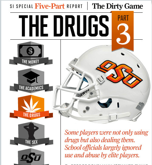 In the first section of the five-part series, Sport Illustrated began with accusing members of the Oklahoma State University athletics department with providing students with “boosters” or rewarding them with money after a successful practice or game (Favalor, O’Colly 11 Sep. 2013). In the article, Tatum Bell, a former Oklahoma State football player and retired professional athlete, was specifically targeted for accepting these illicit payments. However, when members of the Daily O’Collegian interviewed Bell regarding the accusations, he declared them to be entirely false.